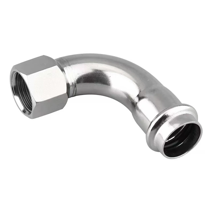 A Double Clamp 90 fokos belső menetes átalakító könyök egy speciális szerelvény, amely 90 fokos irányváltást ér el a csővezetékben, miközben belső menettel rendelkező alkatrészekhez csatlakozik. A Shenchi Factory által gyártott termék különösen az egyszerű telepítés miatt figyelemre méltó. Rozsdamentes acélból készült integrált kovácsolással készült. Az egyik végén egyetlen préselhető interfész található a csövek csatlakoztatásához, míg a másik végén precíziós belső menetek találhatók, amelyek lehetővé teszik a zökkenőmentes átalakítást és a különböző típusú alkatrészekhez való csatlakoztatást. Nincs szükség hegesztésre; egyetlen préseléssel, speciális szerszámmal rögzíthető. A tömítő szerkezet szoros, megakadályozza a szivárgást, és ellenáll a nagy nyomásnak és a korróziónak. Rugalmasan alkalmazkodik a csővezeték-elrendezésekhez olyan forgatókönyvekben, mint a vízellátás, a vízelvezetés és a HVAC. Hatékony telepítést és kényelmes későbbi karbantartást kínál, stabil megoldást nyújtva a csővezeték irányváltoztatására és átmenetére.
